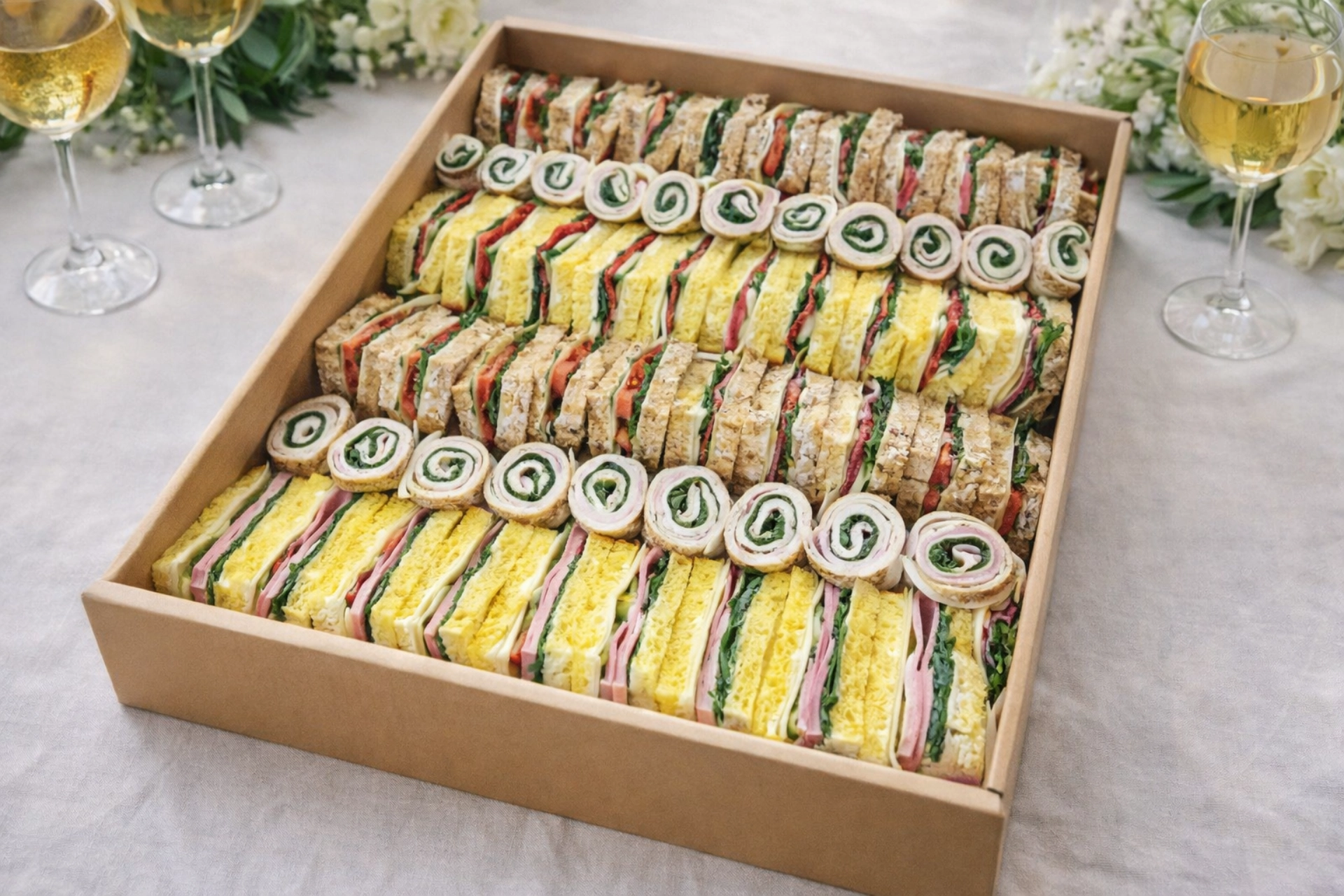 - šunka, sir, rikula, majoneza, tortilla (16 kom)